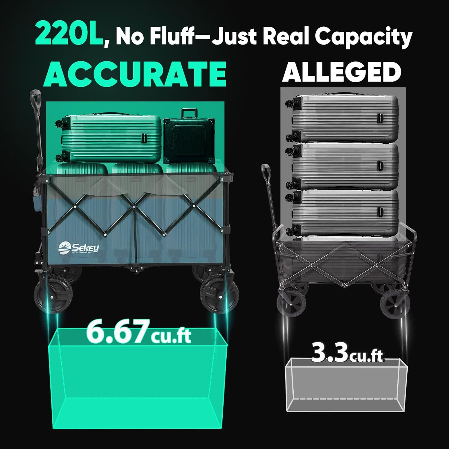 - ใ๐๐จ ๐๐ง๐ฒ๐ฐ๐ก๐๐ซ๐ ๐๐ก๐๐๐ฅ๐ฌใ: Featuring ๐" ๐๐ข๐๐ฆ๐๐ญ๐๐ซ ๐ฐ๐ก๐๐๐ฅ๐ฌ ๐๐ง๐ ๐" ๐ฐ๐ข๐๐ ๐ญ๐ซ๐๐๐๐ฌ, Sekey wagon glides effortlessly over sand and rough terrain. The ๐๐ง๐ญ๐ข-๐ฌ๐ฅ๐ข๐ฉ ๐ซ๐ฎ๐๐๐๐ซ strip enhances traction and reduces vibrations, while the ๐๐ฎ๐ข๐ฅ๐ญ-๐ข๐ง ๐๐ซ๐๐ค๐๐ฌ provide reliable stopping power wherever you go.
