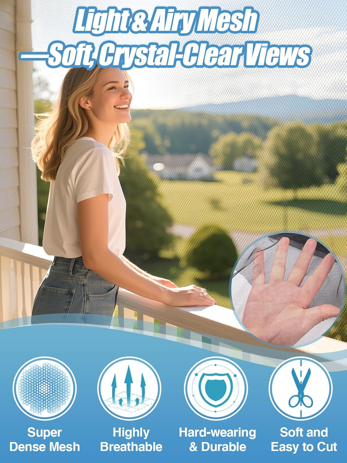- Breathable & See-through: Our product is made with great consideration for breathability, transparency, and aesthetics. You can hang this mesh on a balcony, window, gazebo, terrace, porch, umbrella, RV camping, or bed. We believe that such a garden net will surely give you a good night's sleep undisturbed in the summer.