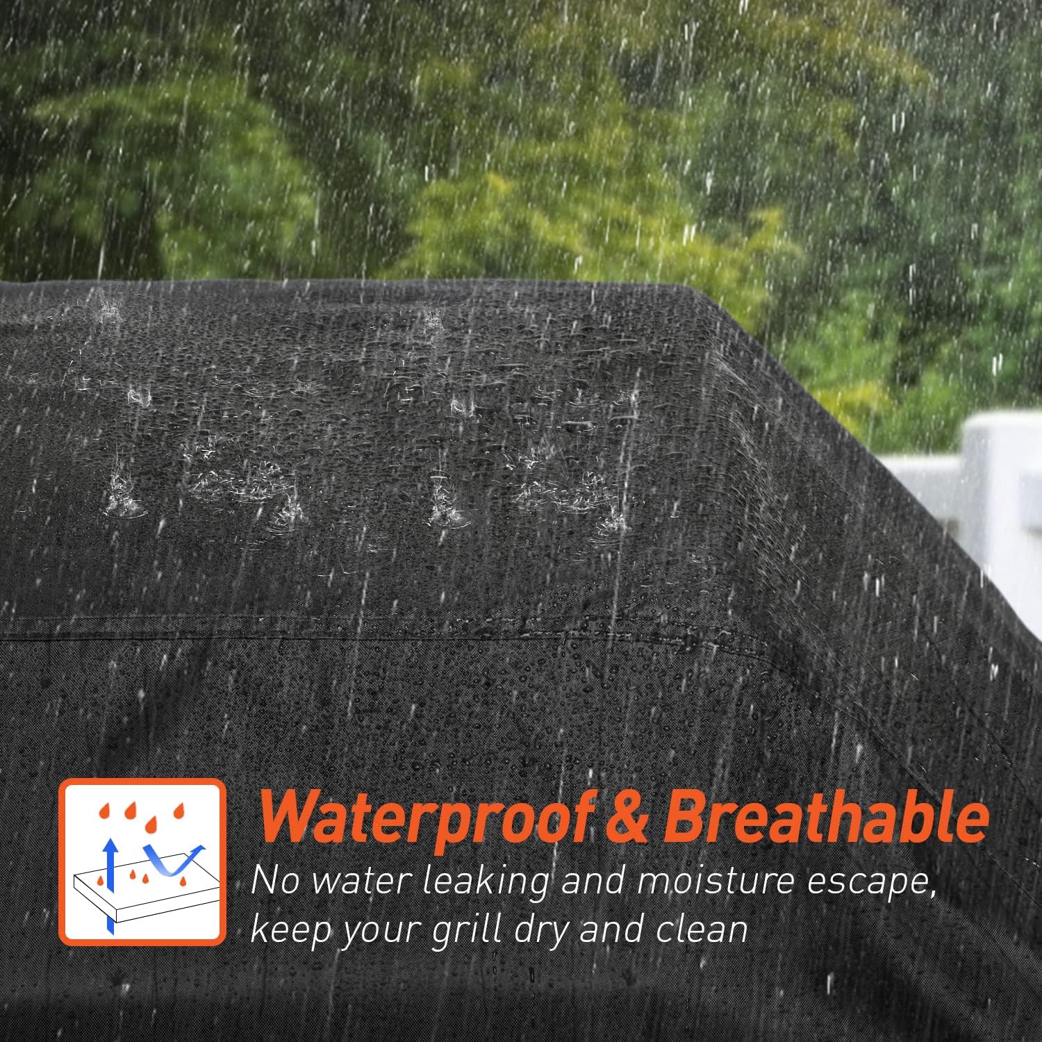 - 【Waterproof and Breathable Material】 - Made of waterproof and breathable 420D polyester fabric with PU backing, prevents water from seeping in and allows moisture to escape, keeping your outdoor grill dry and clean. The grill cover is also easy to put on and take off, will not stick to your grill in hot weather.