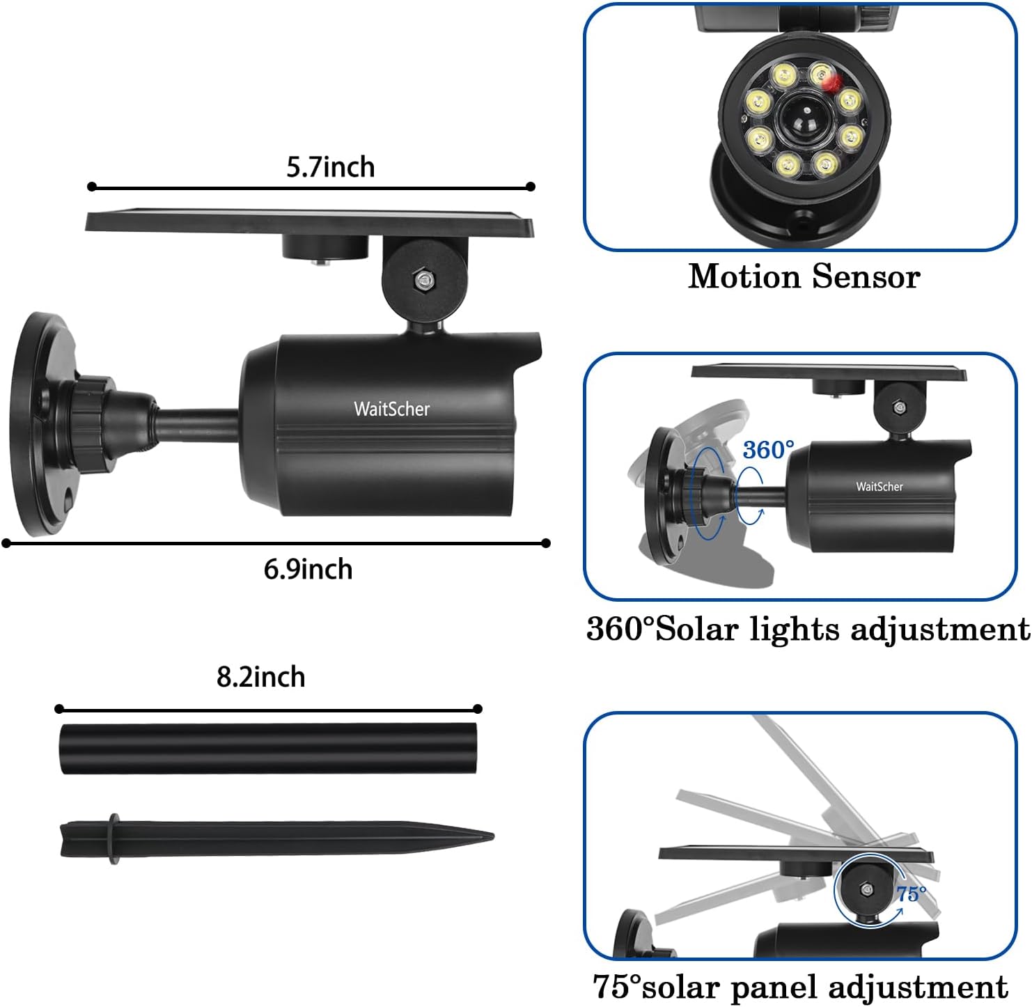 - Solar Flood Lights Outdoor: Bullet dummy surveillance camera with red indicator light is almost as useful as a real one in deterring burglars and intruders but at much lower cost providing secure illumination and protection for the dark corner of your house, especially for those who live alone