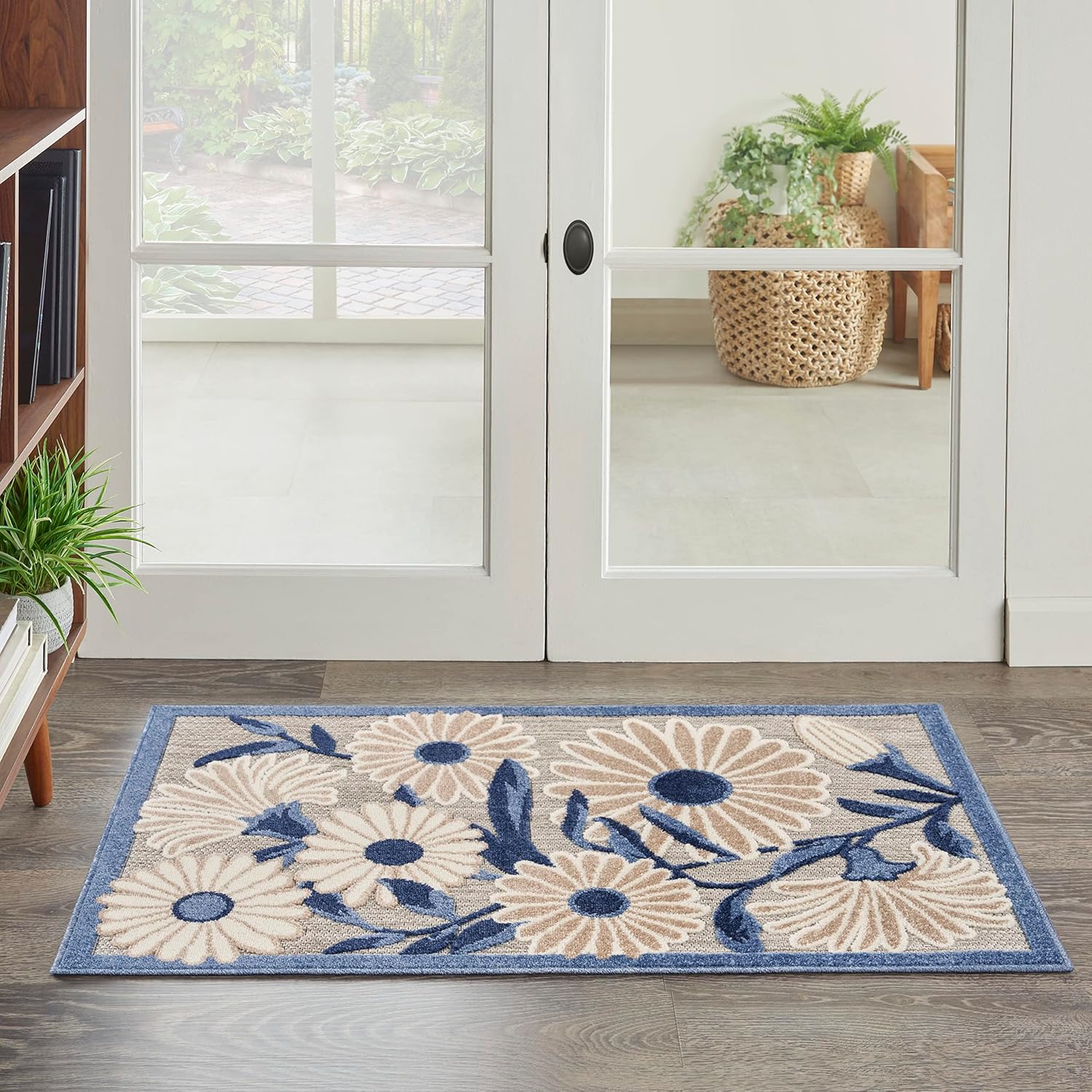 Nourison Home Aloha 3' x 4' Blue Gray Fabric Contemporary Area Rug (3' x 4')