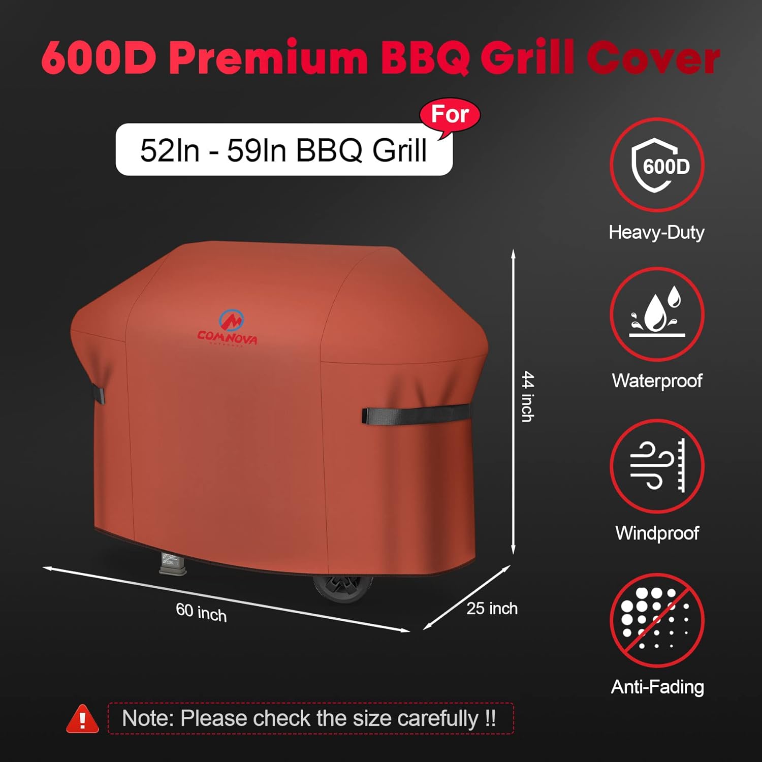 Comnova Grill Cover 60 Inch - 600D BBQ Cover for Outdoor Grill Heavy Duty & Waterproof, 60 Inch Barbecue Gas Grill Covers for Weber, Char-Broil, Nexgrill, Dyna-glo, Monument, Brinkmann and More