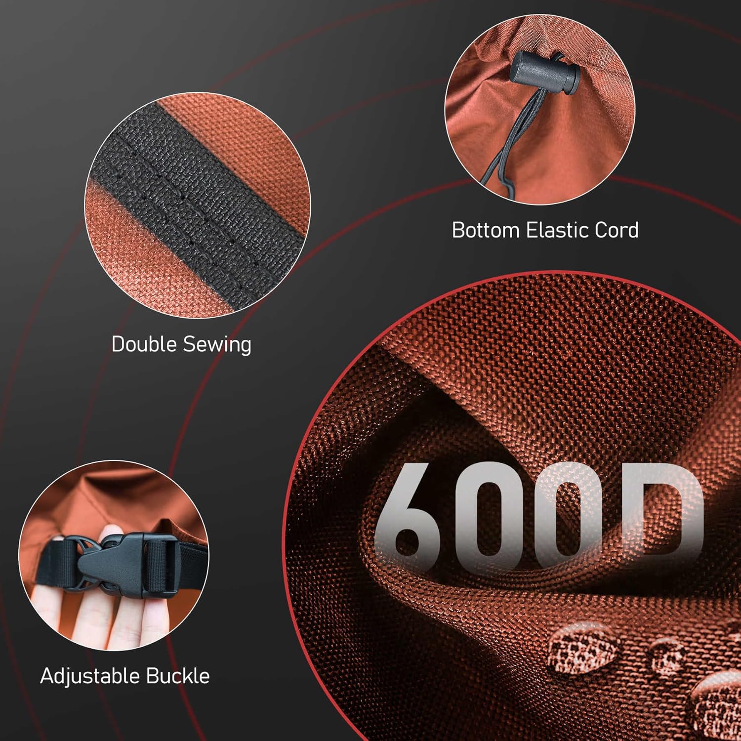 - | 600D Heavy-Duty & Super Waterproof | - Made of Premium 600-Density oxford cloth with PU coating, Zettum outdoor fire pit covers are extremely heavy-duty and super waterproof. Compared with PVC type cover, our firepit covers are more breathable and softer, hard to be torn in outdoor. More important, PU type coating are more environmentally friendly!!