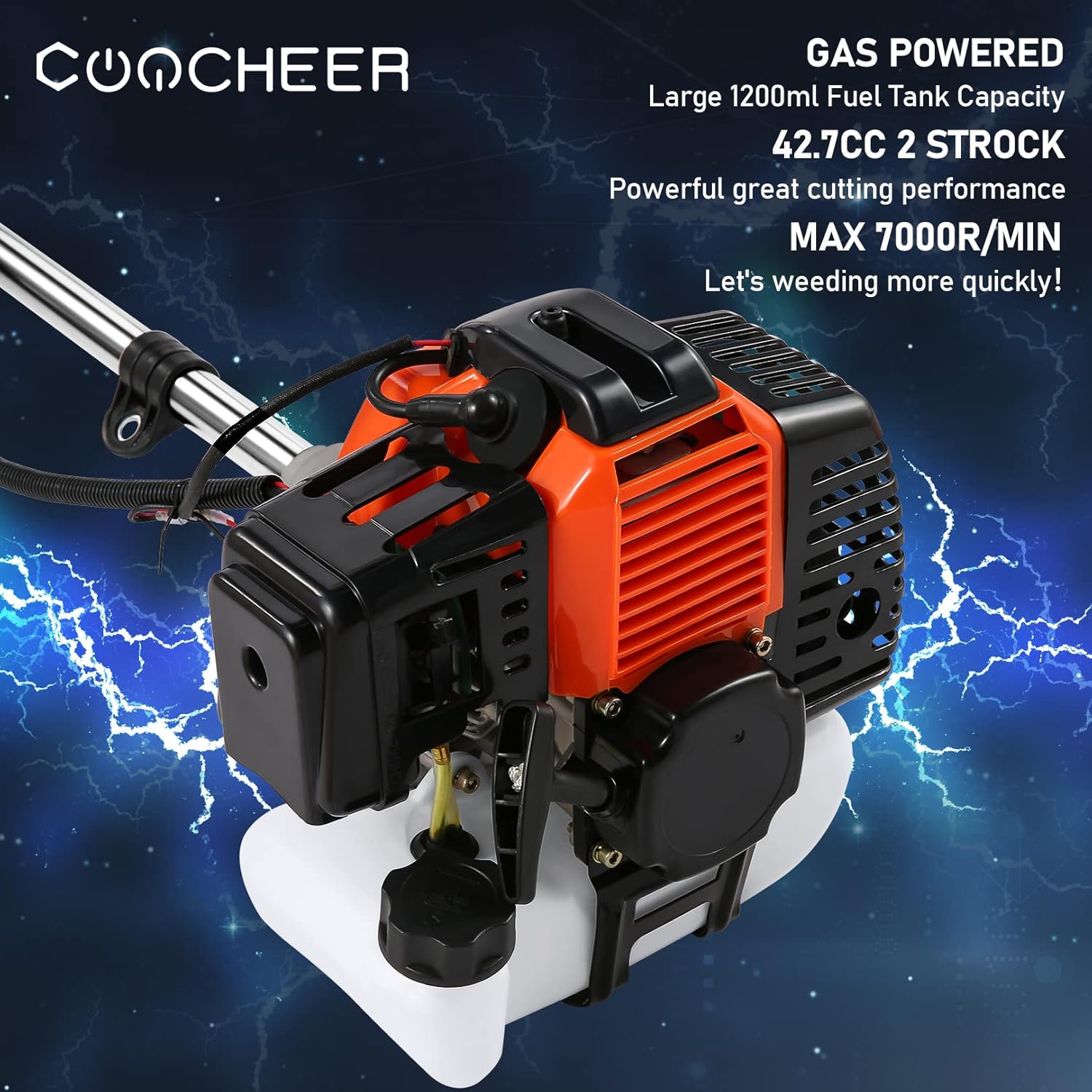 - 🌟 42.7CC Powerful Engine➤ The powerful 42.7cc 2-cycle engine provides greater power and less vibration, offers a consistent performance. The max engine speed can be up to 7300r/min, allowing you to do heavy duty jobs and finish the job more efficiently and quickly.