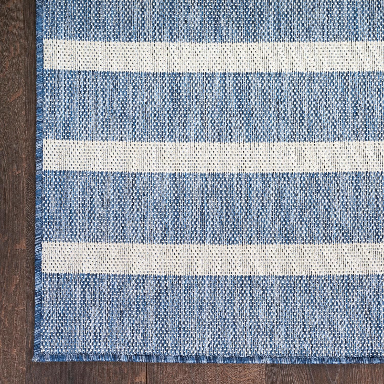 - COASTAL STYLE: This striped outdoor rug brings breezy, laid-back charm to your space