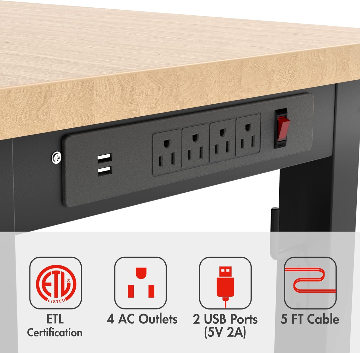 WORKPRO 48" Adjustable Workbench, Rubber Wood Top Heavy-Duty Workstation, 2000 LBS Load Capacity Hardwood Worktable with Power Outlets, for Workshop, Garage, Pack of 2