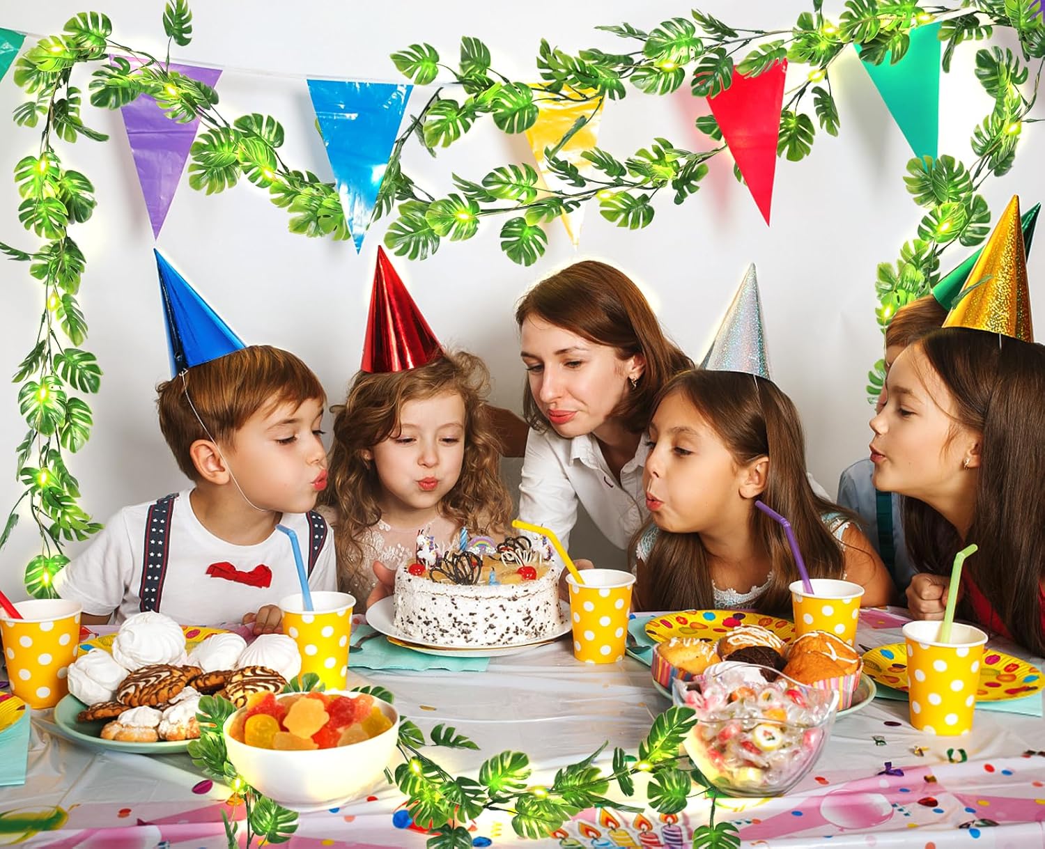 RECUTMS Artificial Monstera Leaf Vines Whit Light 2Pcs, 5.9FT Fake Hanging Ivy Plant Faux Tropical Palm Leaves Greenery Vine Garland Indoor Outdoor Garden Porch Patio Jungle Luau Birthday Party Décor