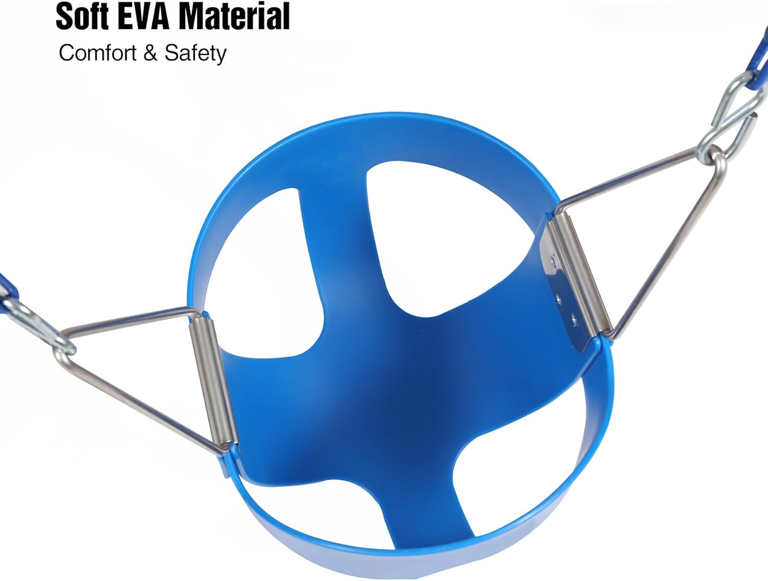 - Premium Materials: High-back full-bucket toddler swing seats are made of durable EVA plastic and heavy duty components. The soft plastic material ensures comfort to sit on, and the sturdy heavy parts ensure safety during play.