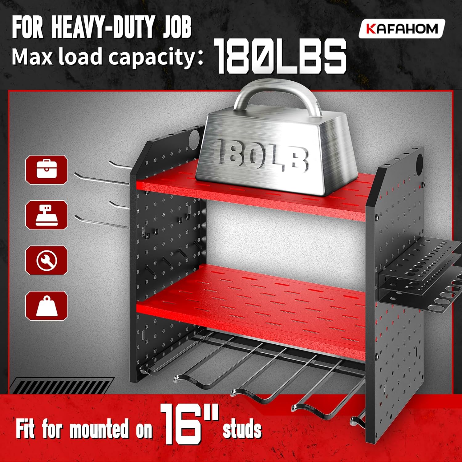 - QUALITY FEATURES: The KAFAHOM power tool organizer showcases outstanding craftsmanship in the choice of materials, ensuring durability and longevity. Its robust structural design provides ample support and stability, making it an ideal storage solution for heavy power tools and multiple pieces of equipment. These characteristics combine to make this tool rack an exceptional addition to any workspace.