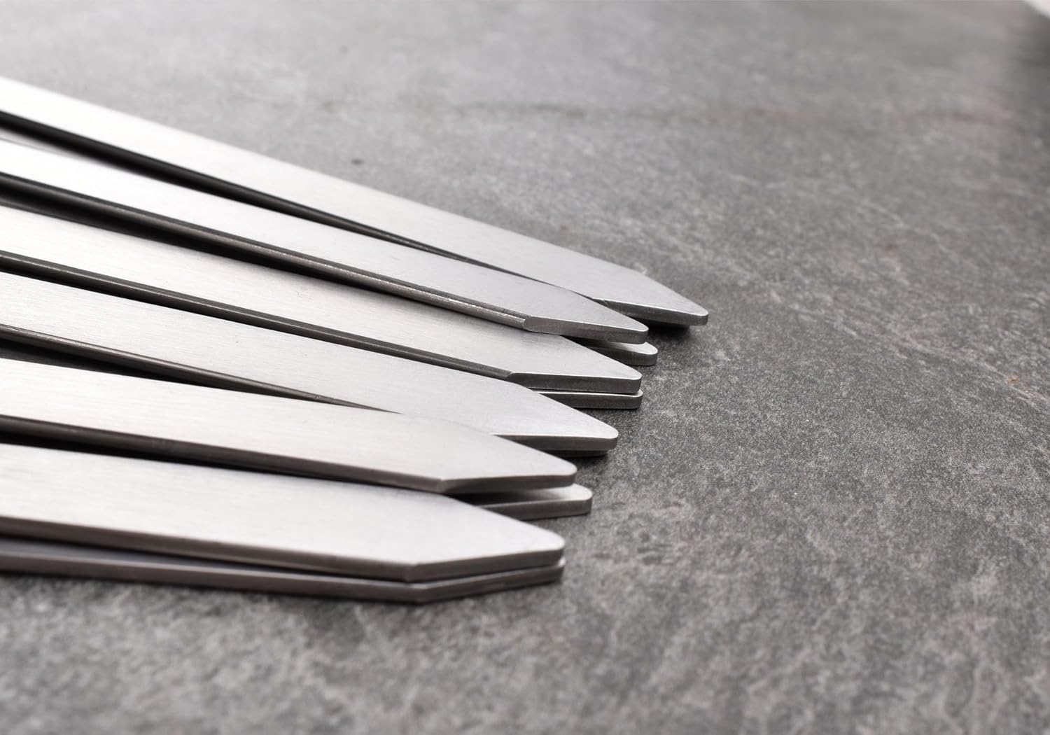 - Flat Skewers-These kabob skewers are designed to be flat in order to keep your food from moving or spinning while being grilled.With these long grilling skewers each piece of meat is cooked evenly thanks to the skewers flat design;