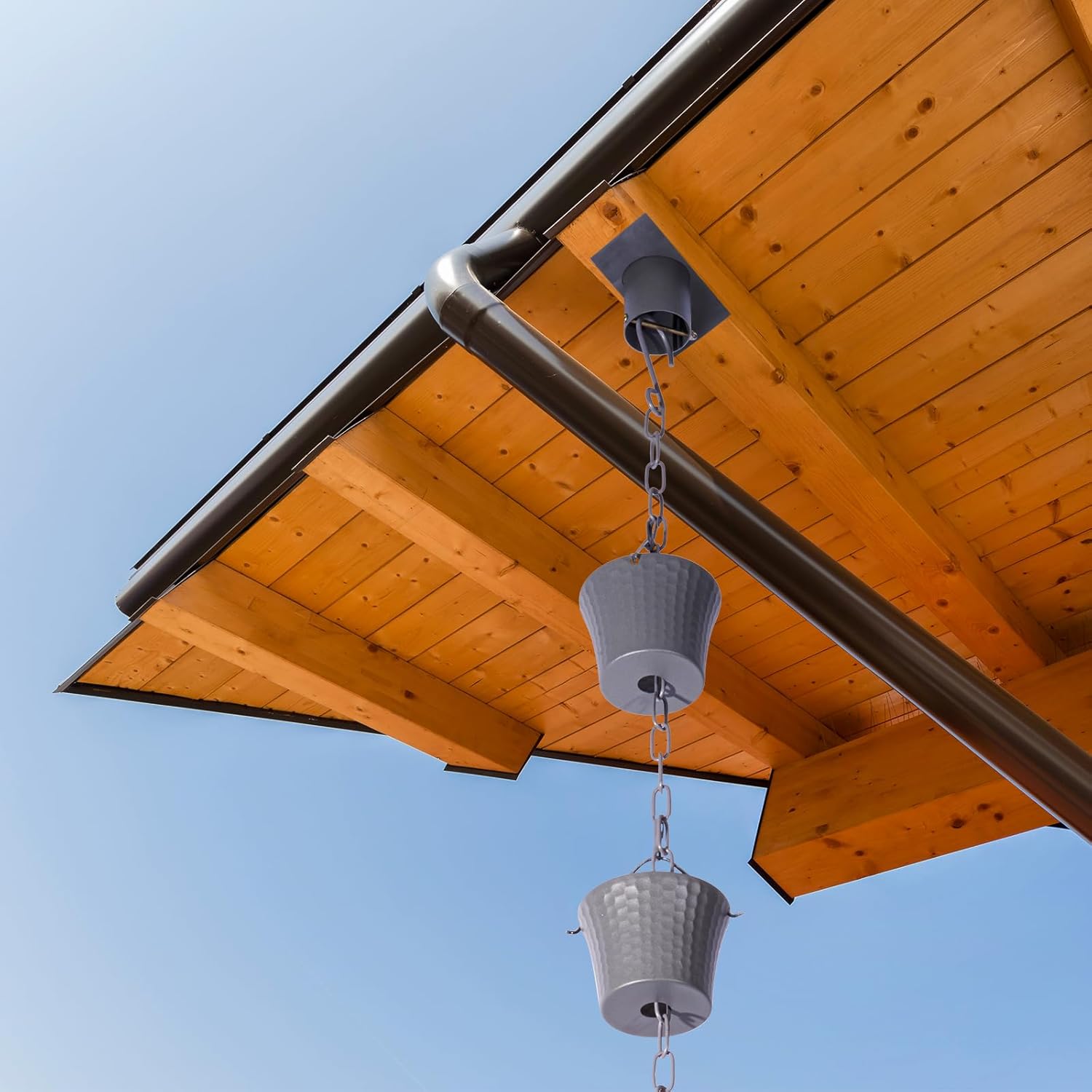 - Classic Looking Design:The standard length of the gutter rain chains is 8.5 FT. The rain chain is made of (larger size of 14 ,3.95 inch wide, 3 inch high cylindrical cups and chains) combined with each other, so beautiful that water flows down each cup on the rain chains, creating a beautiful water feature.