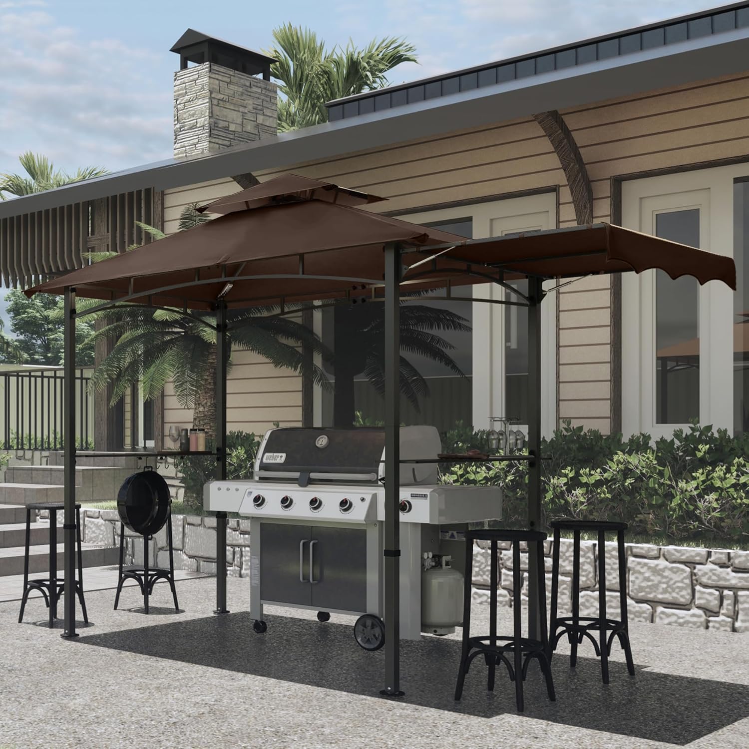 - ✅Extra Side Awning:The new upgraded grill gazebo adds an extra awning, the extra awning can increase the grilling space as well as shade the food to keep it fresh, it also provides better rain protection for people and food.