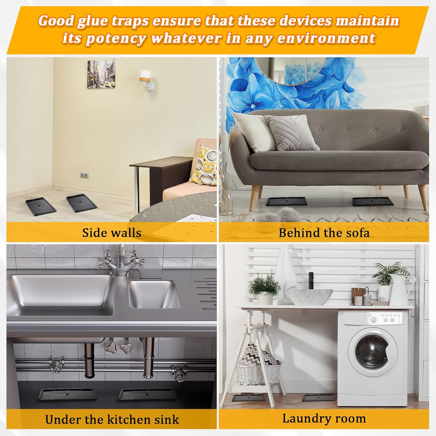 - Pest and Mouse Sticky Traps: sticky traps for mice can catch not only mice but also other common pests in your home, and we suggest you position sticky traps along active rodent runways, such as along walls, under large kitchen appliances, in cupboards, and other areas where rodents travel, be sure to fit the glue trap flush against a wall where rodents will run over and stick to it