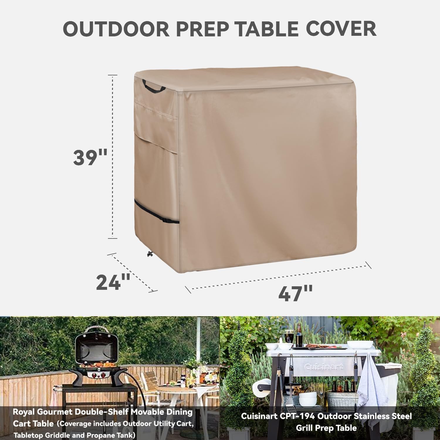 Outdoor Dining Cart Cover - Heavy Duty Waterproof Cover for Royal Gourmet Cart Flattop Worktable, Coverage Includes Outdoor Utility Cart,Tabletop Griddle and Propane Tank.Khaki