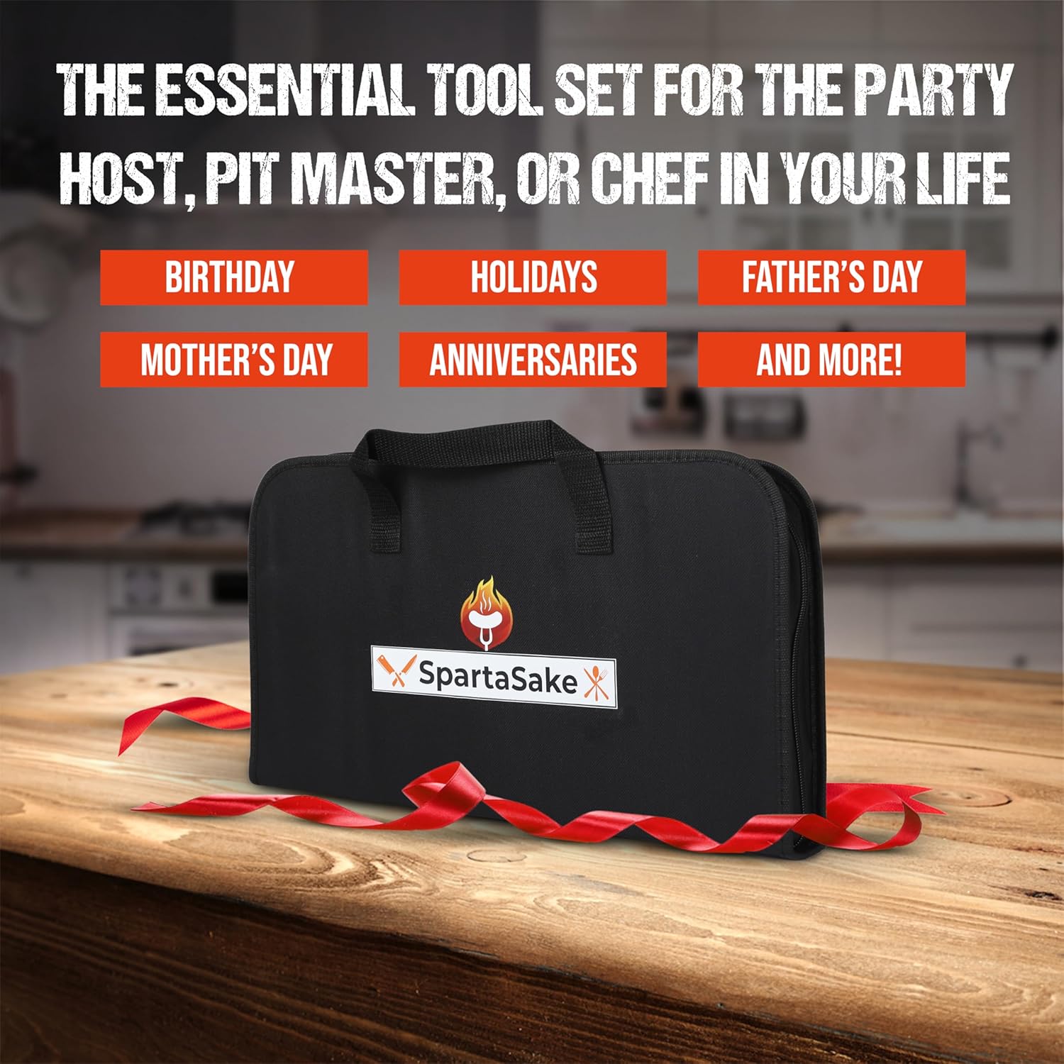 - GRILLING ACCESSORIES : Upgrade your grilling game with our SpartaSake 24-piece Grill tools set including top-quality knife, fork, spatula, tongs, flavor syringe, and more. This comprehensive set has everything you need for a professional grilling experience