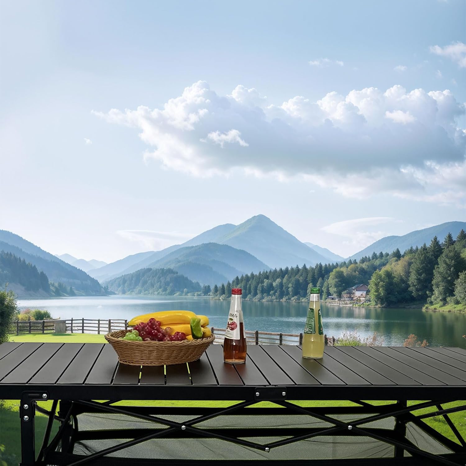 - Portable and easy to carry:The Folding Camping Table is perfect for outdoor activities, such as camping, traveling, and beach outings, as well as indoor use. Made of lightweight aluminum alloy, this table is portable and easy to carry around thanks to its attached tote bag. It won't take up too much space in your car.