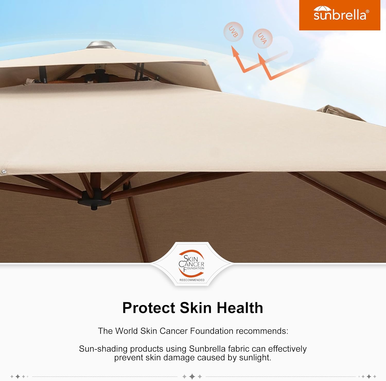 PURPLE LEAF 9' x 12' Double Top Deluxe Rectangle Patio Umbrella - Offset Hanging Cantilever Umbrellas in Heather Beige