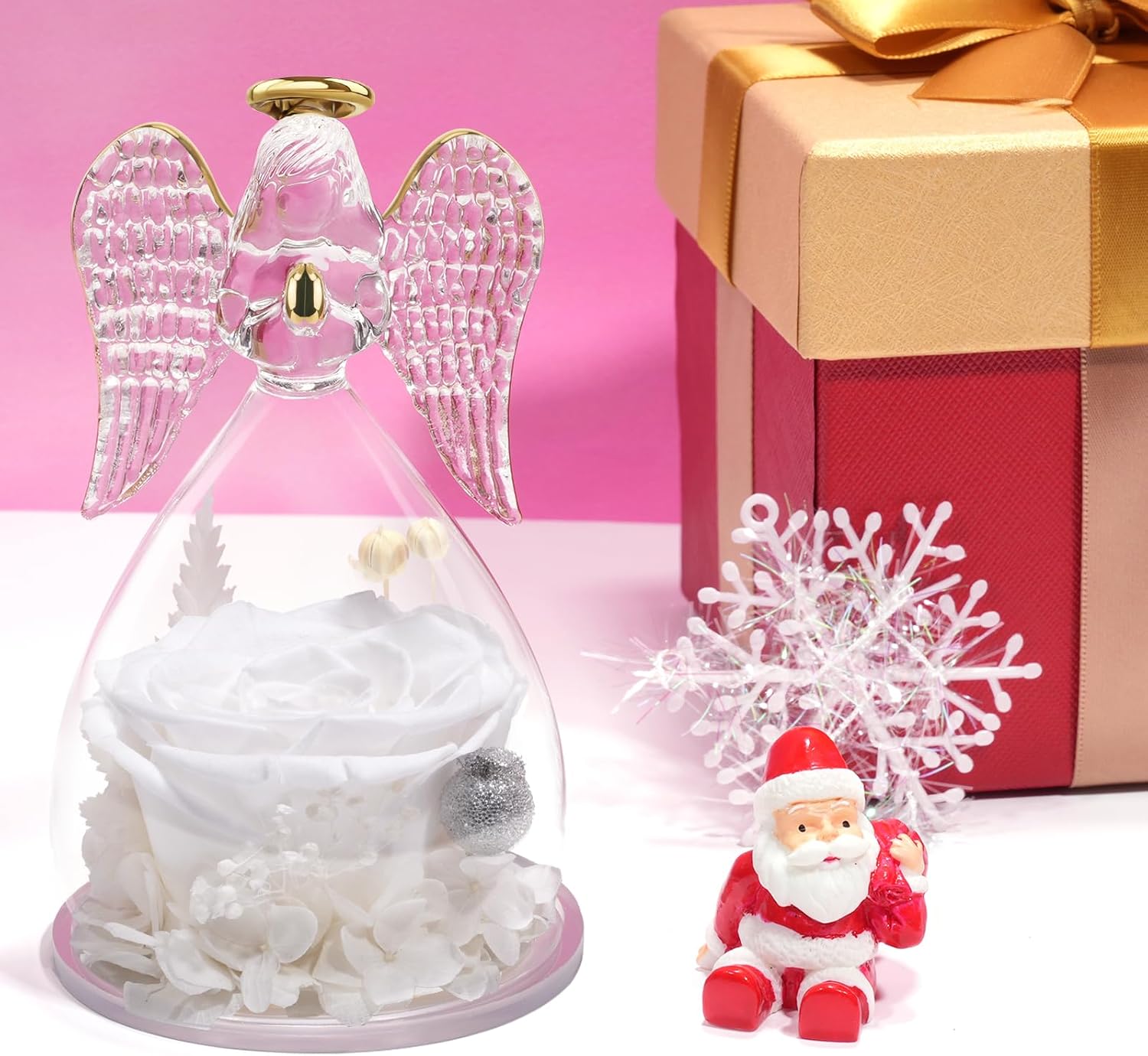 Yamonic Birthday Gifts for Women, Angel Figurines with Real Rose Gifts for Her Mom Grandma,Preserved Flowers Rose Angel Figurines for Mothers Day Christmas Anniversary Birthday Gifts for Her (White)