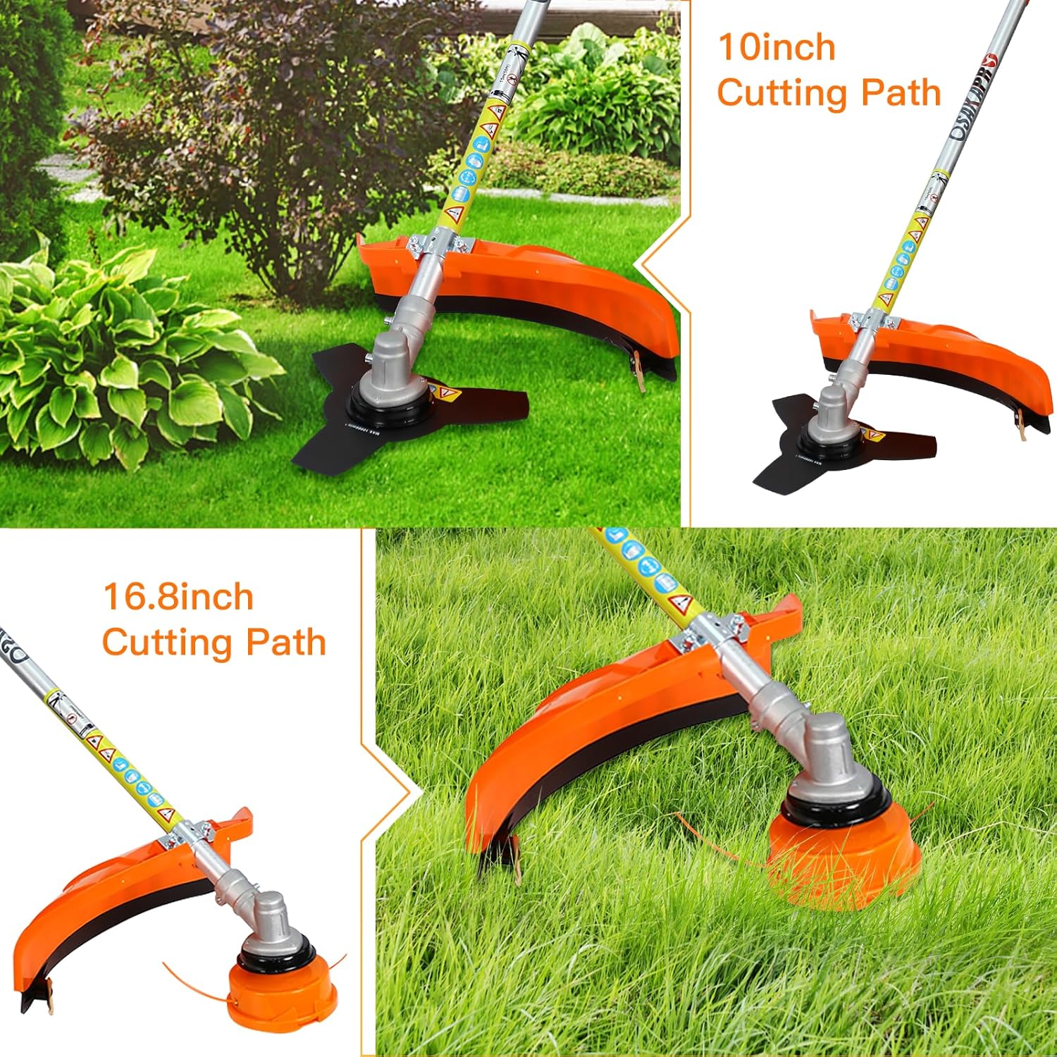 - 【6-IN-1 Compact Cordless Grass Trimmer】 With 5 different tools: a nylon head, a 3T blade, a 40T Blade, a pole saw cutter, a hedge trimmer blade,the Gas Petrol Hedge Trimmer plays a diversified role when tackling the outdoor job. As the Smoother and easier pull starter make the machine start much easier, you are able to start tidying the garden/yard/Lawn/Forest(wherever you go) only in a few seconds. This weed eater and brush cutter allows you to do multiple chores with one machine.