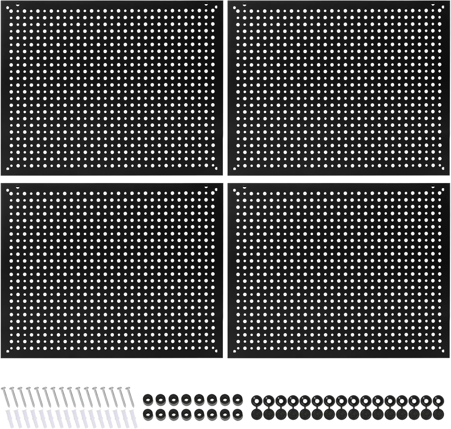 4 Pack Heavy Duty Steel Pegboard Garage Organization Panels,Universal 1/8 and 1/4 Pegboard Accessories,Suitable for Tool Storage,Garage Storage etc.(Black, 16X12)