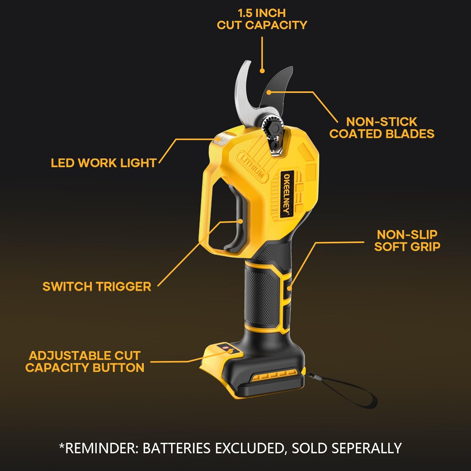 - 【Compatible With DeWalt 20V MAX Batteries】The Okeelney Electric Pruning Shears feature seamless integration with the De-Walt 20V MAX battery platform (tool-only configuration; battery excluded), enabling cost-efficient operation through compatibility with genuine batteries and chargers