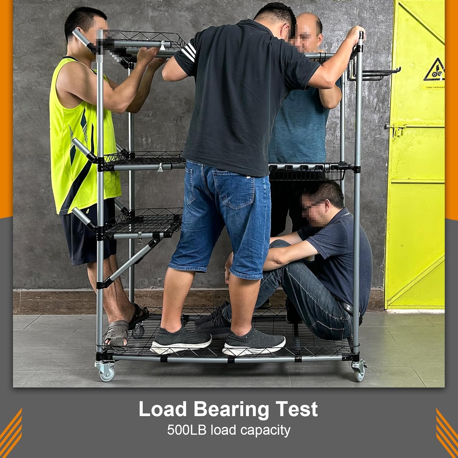 - 3【Three-tier Basket with Guardrails:】 Three-tier baskets with guardrails for storing various power tools, such as cutting machines, chainsaws, leaf blowers, etc.