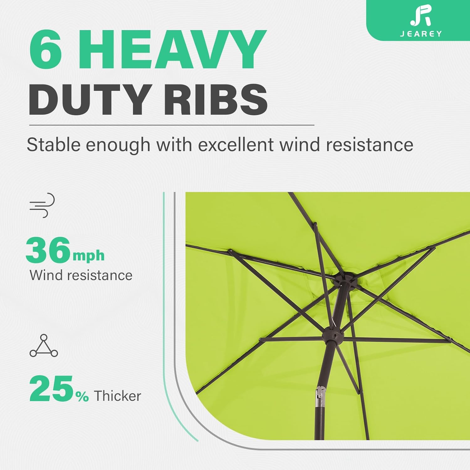 JEAREY 6.5x10 ft Rectangular Patio Umbrellas Outdoor Market Umbrella with Push Button Tilt and Crank, Rectangle Table Umbrella 6 Sturdy Ribs UV Protection for Pool Garden Backyard Deck, Apple Green