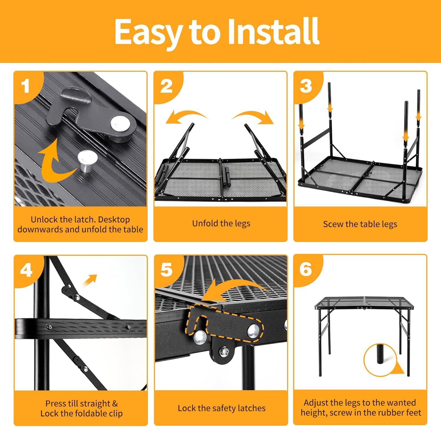 - Heat&Waterproof Top - Moosinily folding table, with 1.6mm steel mesh top covered by powder painting, perform well no matter in heat or water. The edge of the steel mesh has been polished so it would not be sharp for hands. The thickened 1050A aluminum alloy frame with a diameter of 25mm is lightweight, anti-corrosion, and rust-resistant