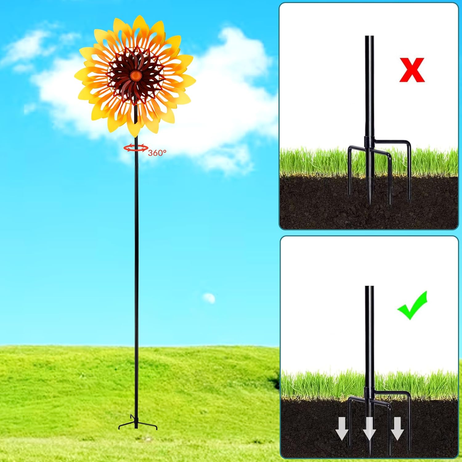 - 【Unique Design】 The Sunflower Metal Wind Spinner features double-sided fan blades with reversible double ball bearings, allowing the two blades to rotate in opposite directions, This unique feature enhances its visual appeal, making it more beautiful compared to spinners that rotate in the same direction.