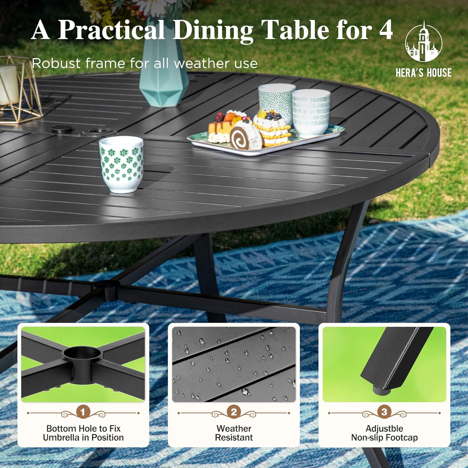 HERA'S HOUSE 5 Pieces Patio Dining Set, 4 x Blue Textilene Dining Chair, 42" Metal Round Dining Table, Patio Table and Chairs Set for Lawn Garden Backyard Deck