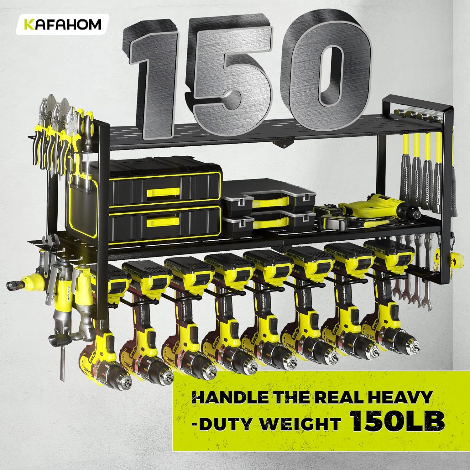 KAFAHOM Power Tool Organizer for Tool Storage, 8 Drill Holder Wall Mount, Tool Holder and Storage Rack for Garage Organization, Heavy Duty Metal Tool Shelf with Air tool/Screwdriver/Hammer Holder