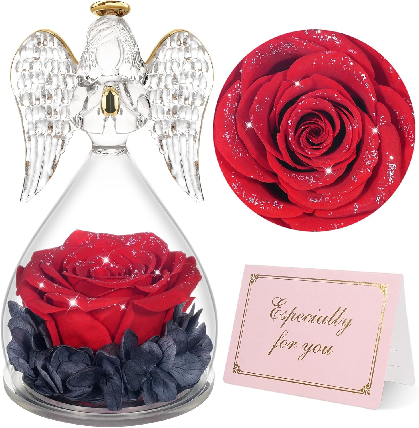 - The package contains 1x Angels Rose, 1x Protection Gift Box and 1x Greeting card.