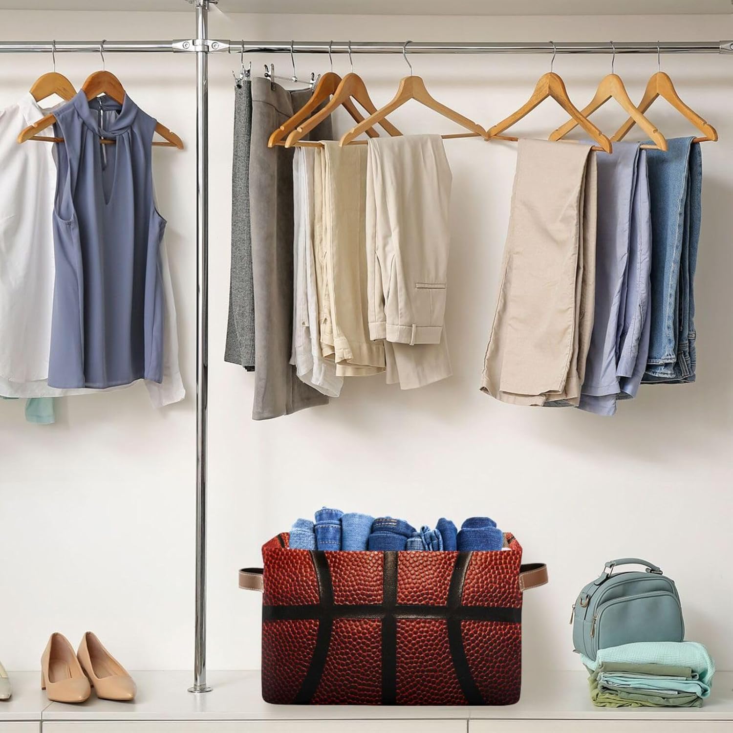 Basketball Print Rectangular Storage Basket Organizer Bin Shelf Baskets For Clothes Gifts For Home Office Dorm