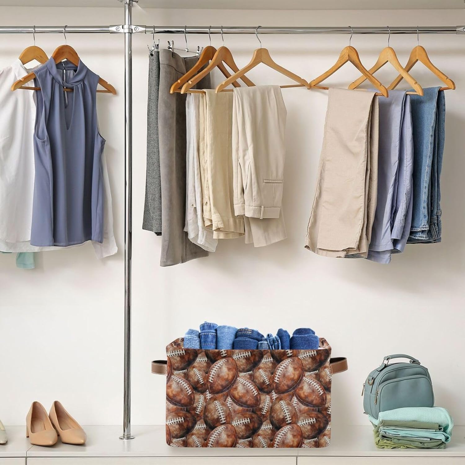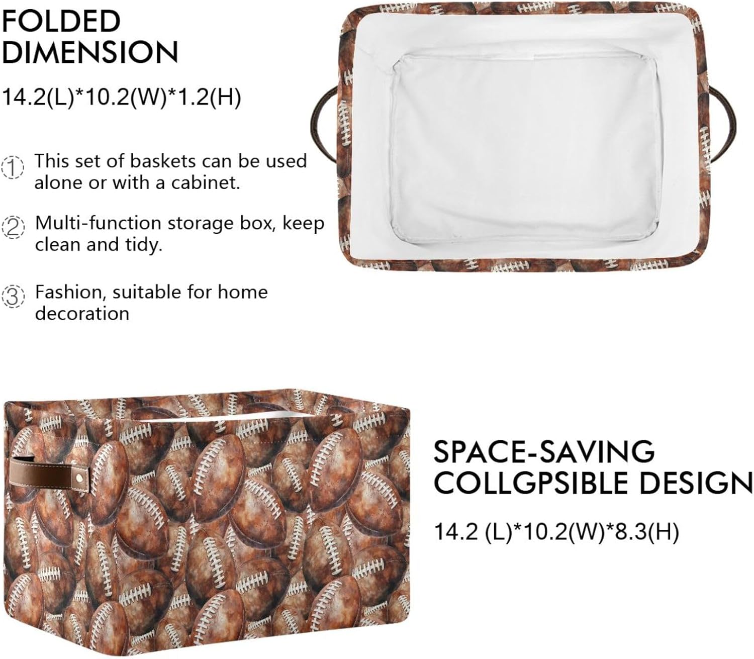 Football Rectangular Storage Basket Organizer Bin Shelf Baskets For Home Office Dorm