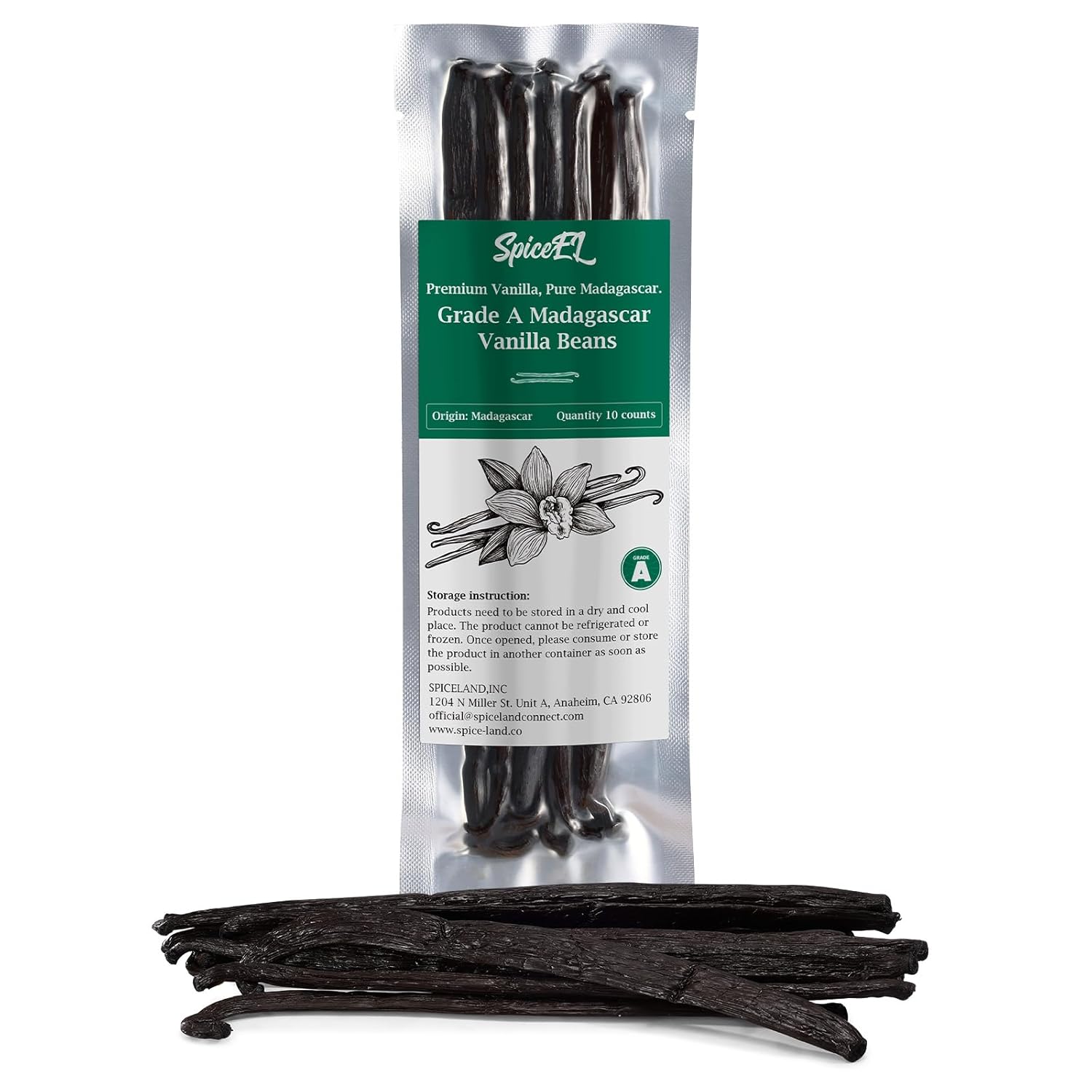 SPICEEL Madagascar Vanilla Beans Grade A Vanilla Pods for Making Vanilla Extract, Whole 5" - 7" Vanilla Beans for Baking, 10 Counts