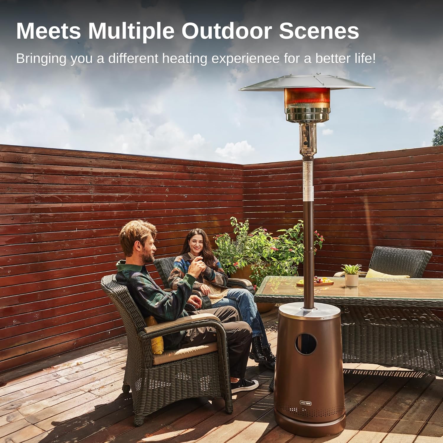 EAST OAK 55,000 BTU Patio Heater with Sand Box, Table Design, Thicker Stainless Steel Burner, Wheels, Triple Protection System, Propane Outdoor Heater for Home and Residential, Commercial Grade, Brown