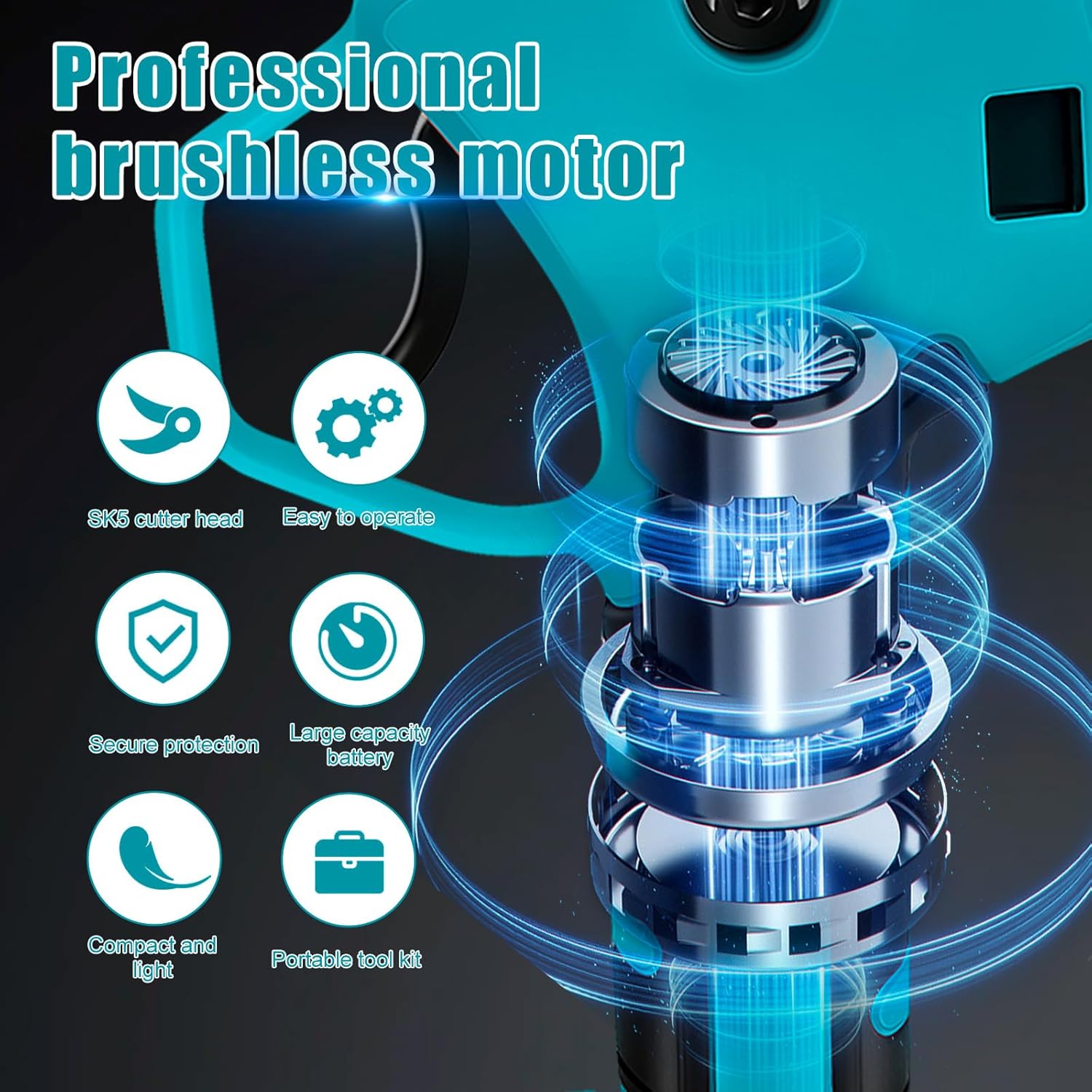 - 【Powerful Brushless Motor & SK5 Blades】The pruning shears is equiped with efficient Brushless motor, offering 50% longer runtime, 25% more power, making pruning tasks quicker and easier. The blade is crafted from SK5 high-carbon steel, ensuring exceptional sharpness, rust-resistant, and wear-resistant, making trimming garden shrubs quick and smooth
