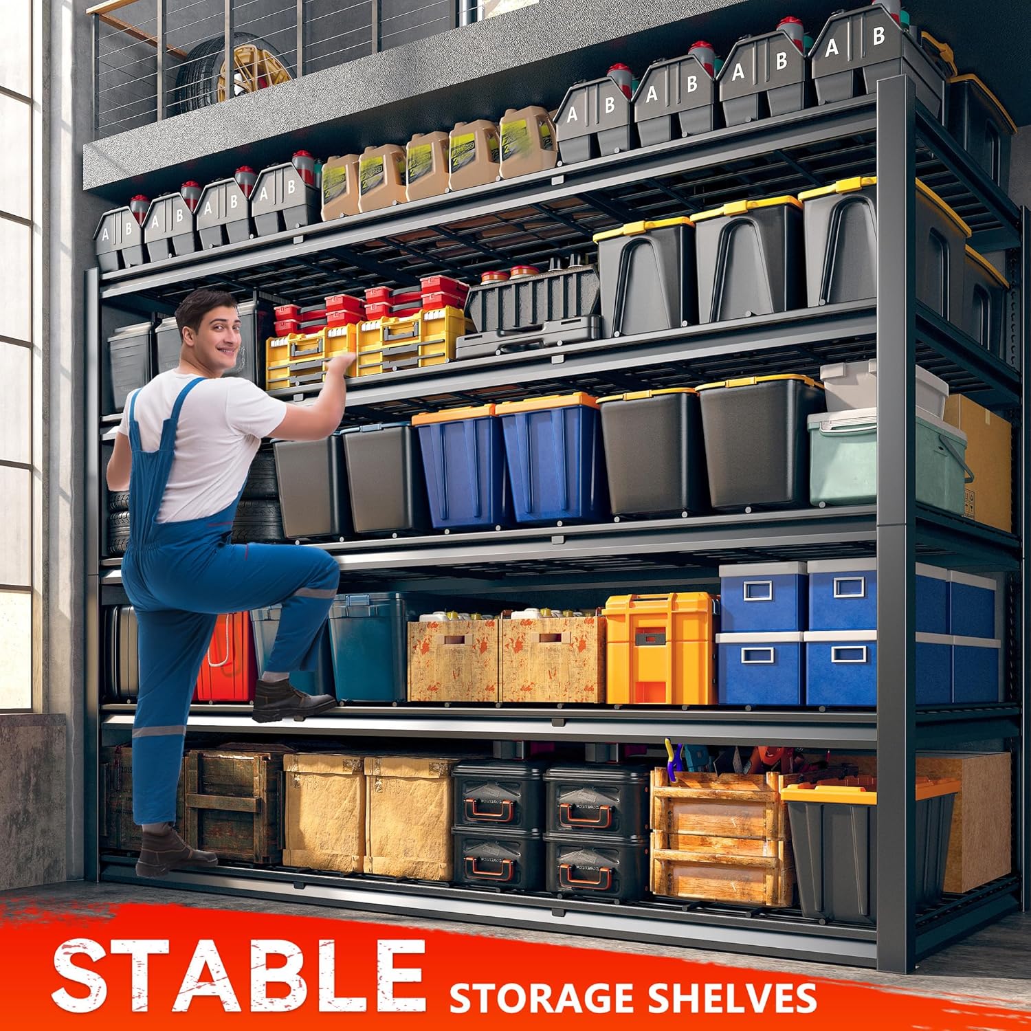 • 【60"W x 72"H x 24"D Wide Storage Shelves】The garage shelving heavy duty is suitable for garage, warehouse, basement, warehouse, library, etc. The 5 tier metal shelves for storage not only expands your storage space, makes your home clean