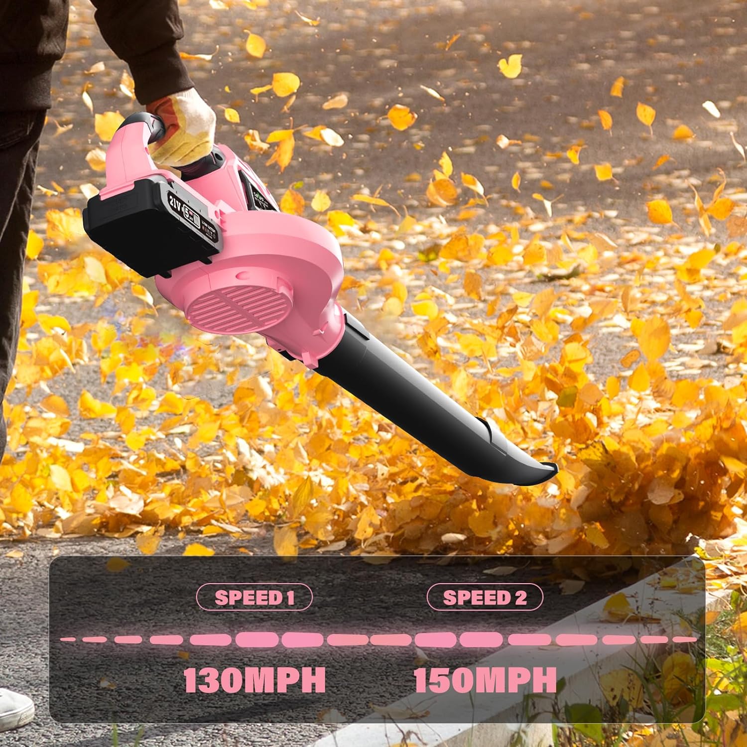 SOYUS Leaf Blower, 20V Leaf Blower Cordless with 2x2.0Ah Battery and Charger, 150 MPH Electric Leaf Blowers with Two-Speed Mode, Blowers for Lawn Care, Debris Dust Cleaning(Pink)