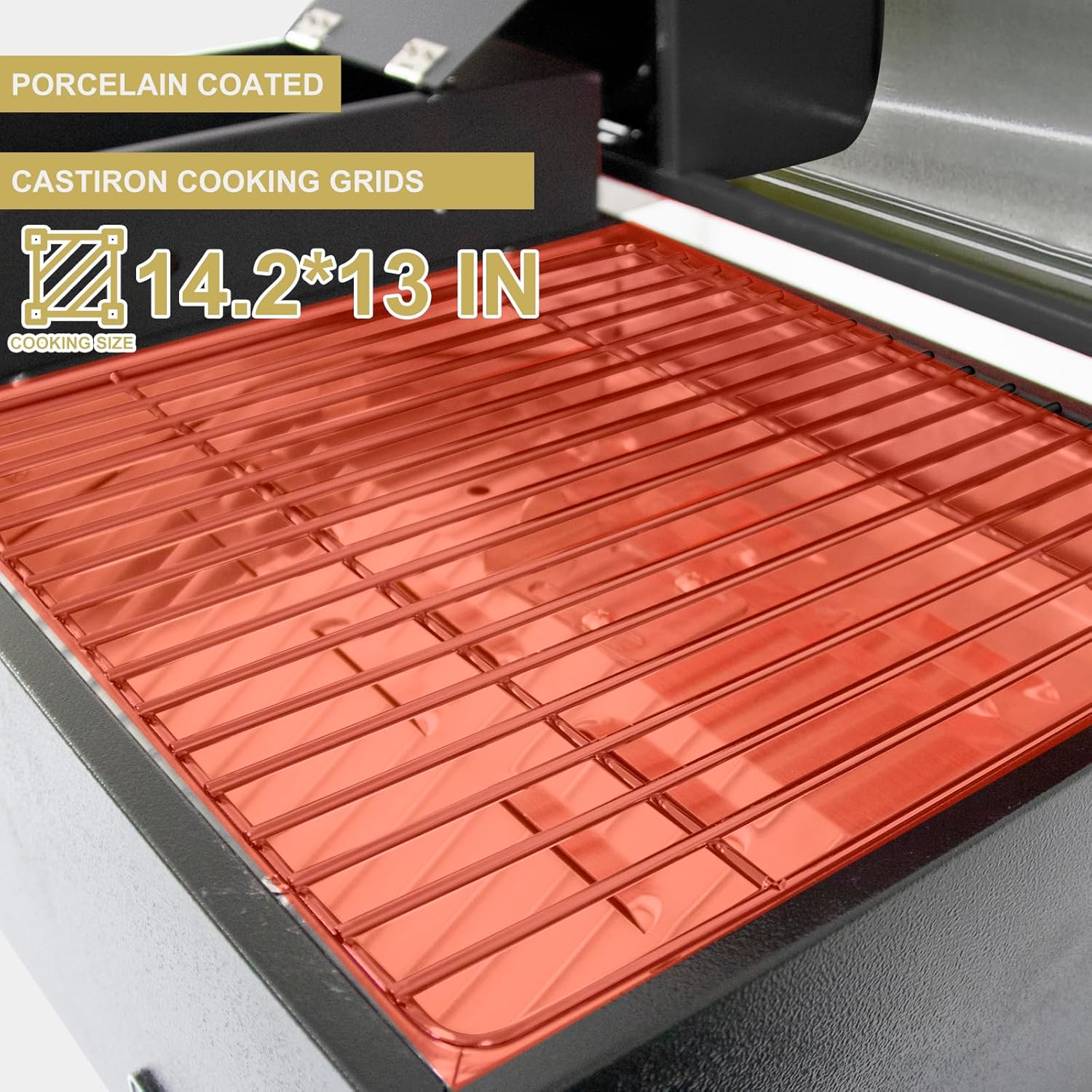 - 【Smart Digital Control with ±5°F Accuracy 】: Auto-adjusts pellet feed to maintain 180°F-500°F (smoke/low/med/high) via knob. Dual-layer metal plates heat 40% faster & hold 27% more heat (lab-tested). Stable 3% temp fluctuation for 12+ hrs slow cooking. Portable yet outperforms commercial grills.