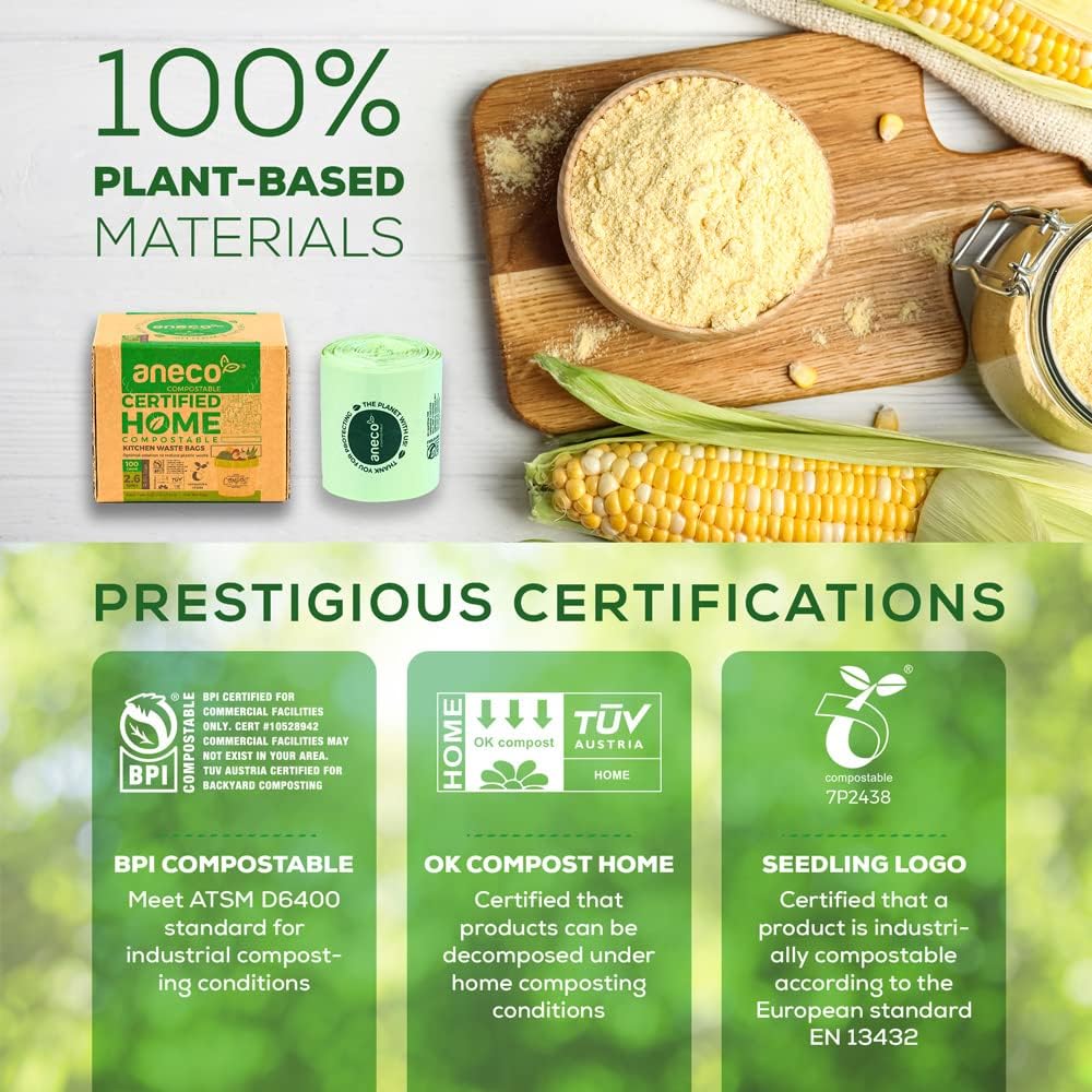 - š Proud to be one of few HOME compostable trash bags in the market, ANECO Compostable bag can decompose completely not only in industrial facilities but also in home system. Use these bags to collect kitchen scraps and put them straight into the compost dumpster, or bury and turn them into valuable compost for your garden