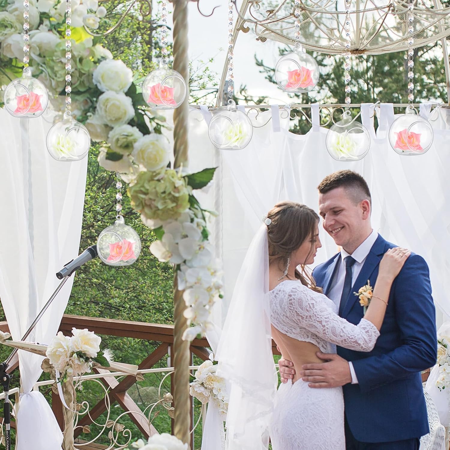 - Versatile Home Decoration: our hanging candle holder sets combine elegance and functionality; With 24 hanging glass tealight holder, 24 artificial flowers, and 12 bead garland strands, you can tailor your decorations according to the occasion or your personal taste; Swap out the included flowers for small LED candles or green plants, allowing for endless decorative possibilities