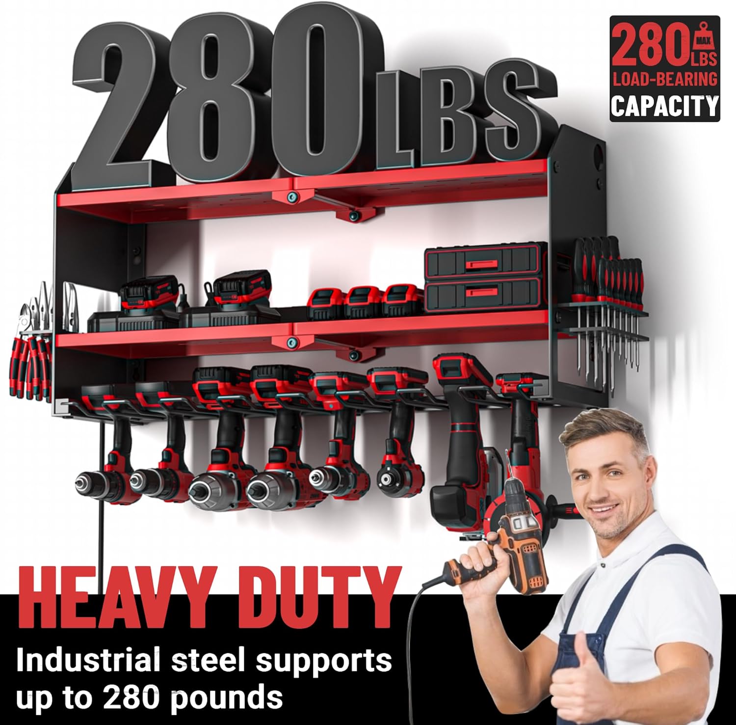 • 【HEAVY DUTY & DURABLE】:Our tool shelf is made of industrial-grade steel and equipped with high-quality mounting screws, with a total load-bearing capacity of up to 280LBS. The durable black powder coating prevents rusting and lasts a lifetime.