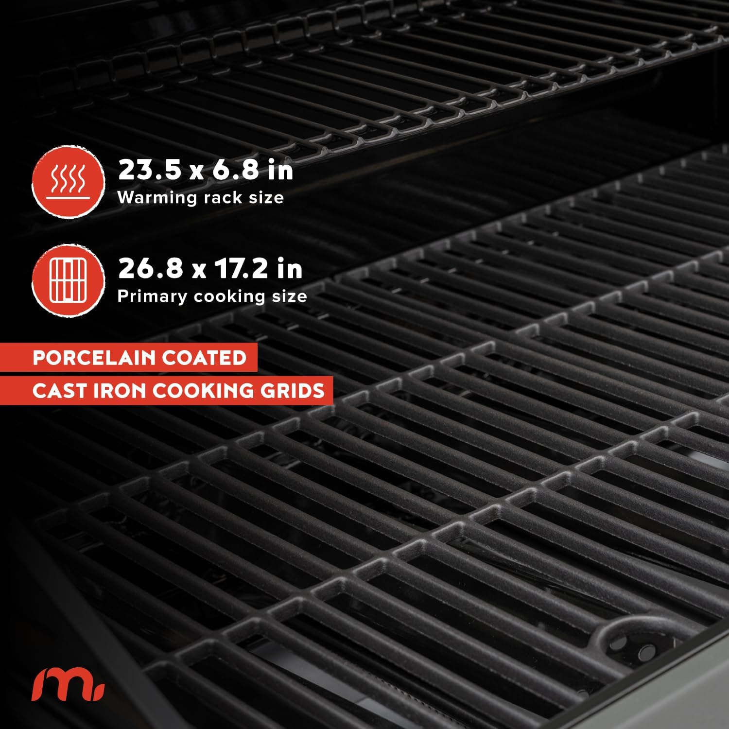 - 【MATTE-FINISHED CAST IRON GRATES】These heavy-duty cooking grates ensure even heat distribution, improved non-stick performance, and long-term durability, with resistance to rust and cracking for consistent and dependable outdoor grilling.