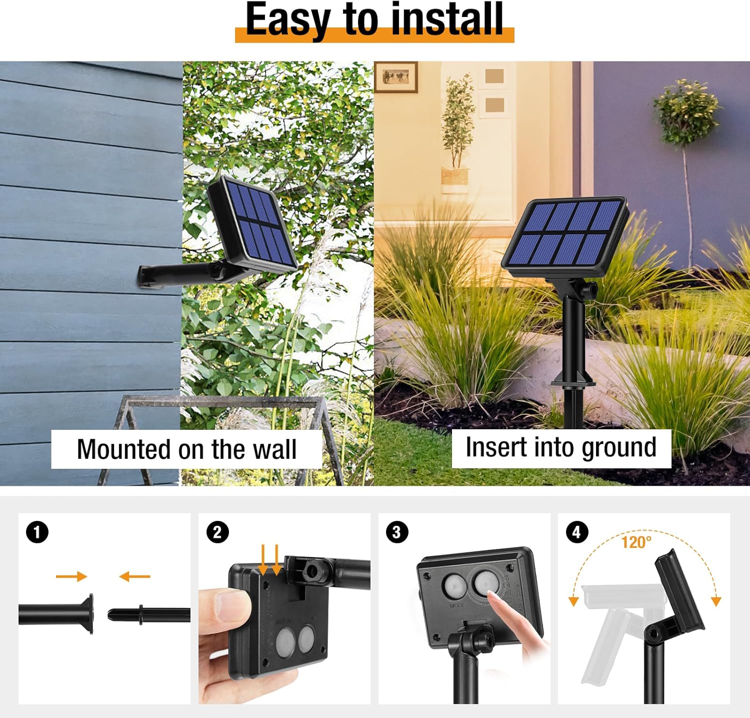 - Special Feature : 8 lighting modes,memory function, auto on/off, IP65 waterproof rate, 2 in 1 install ways.