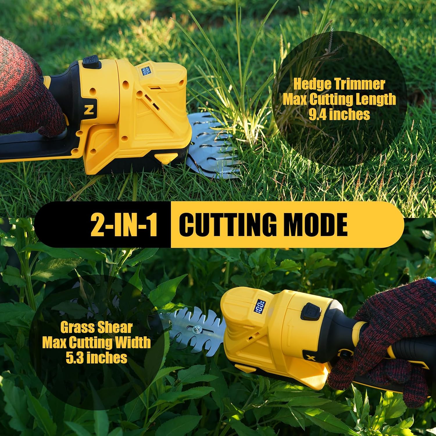 Cordless Hedge Trimmer, Grass Trimmer, 2 in 1 Handheld Electric Bush Trimmer Compatible with Dewalt 20v Battery (No Battery), Grass Trimmer, Bush Trimmer & Grass Shears
