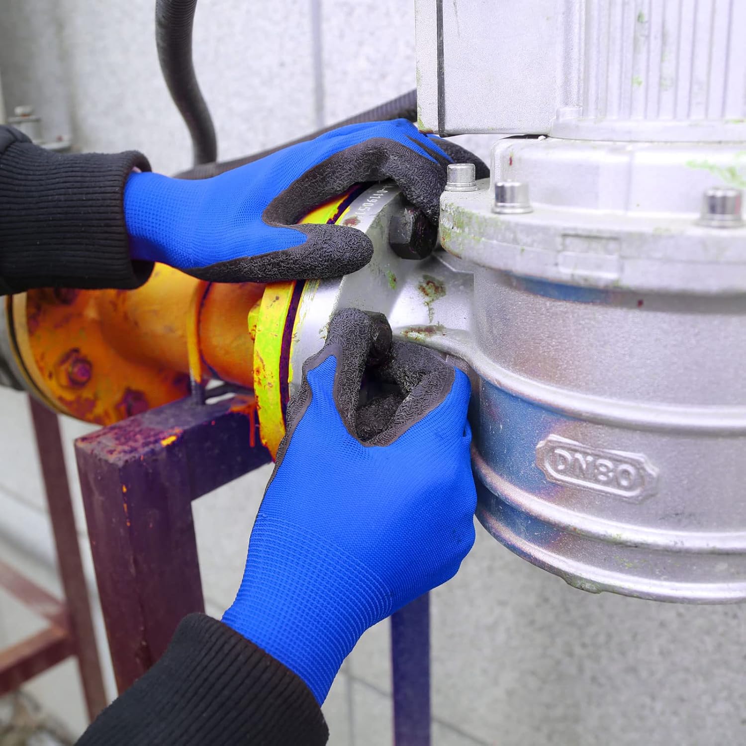 Evridwear Crinkle Latex Rubber Hand Coated Safety Work Gloves for Men Women General Multi Use Construction Warehouse Gardening Assembly Landscaping (XK-Size) Blue 120 Pairs Pack