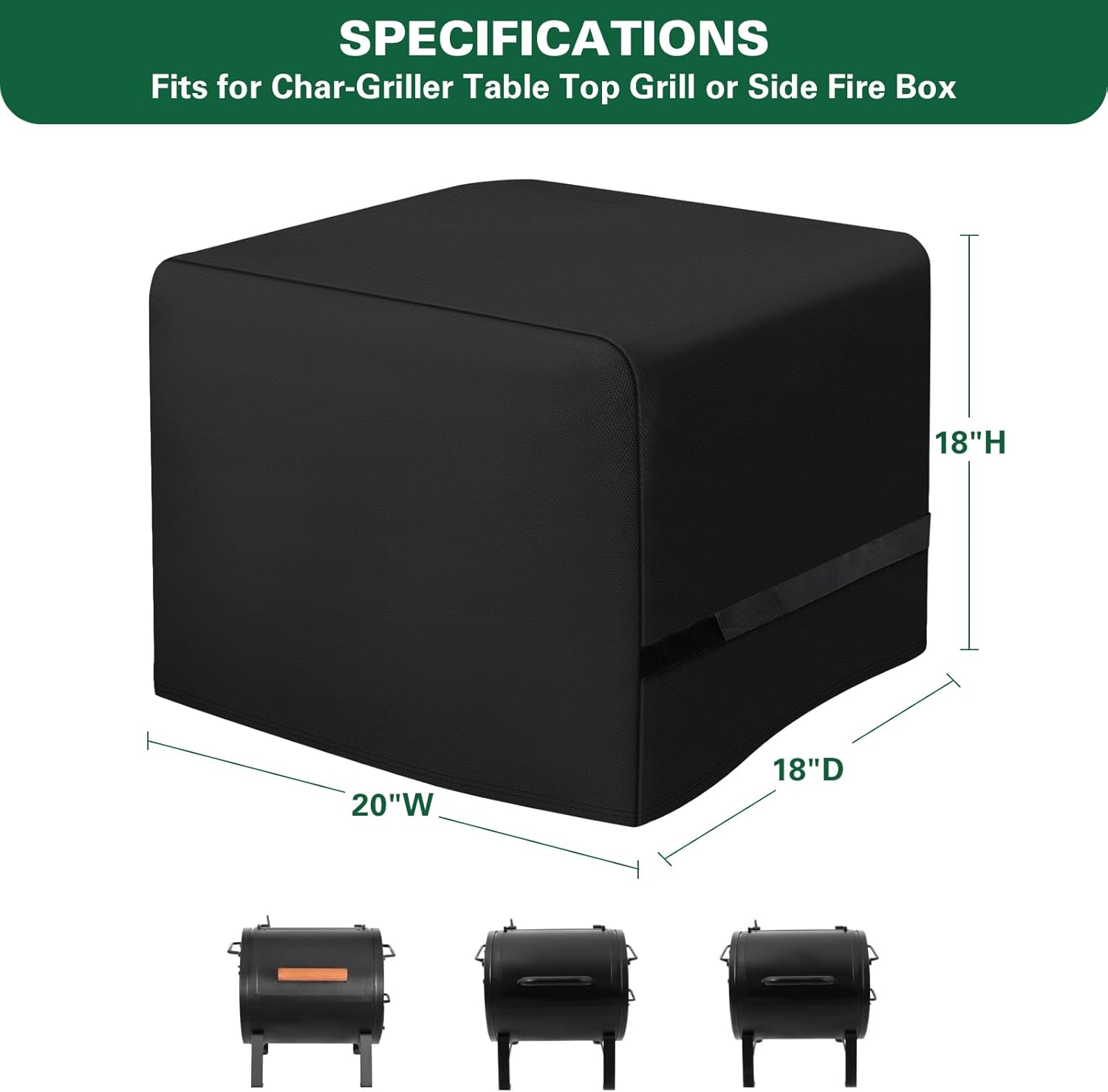 - 【Grill Cover Fit Model】Measures: 18"L x 20"W x 18"H. The 2455 grill cover fits for Char-Griller Portable Tabletop Grill and Side Fire Box, models 22424, 72424, E82424, and 924240. (Please check the model of your grills carefully before ordering)