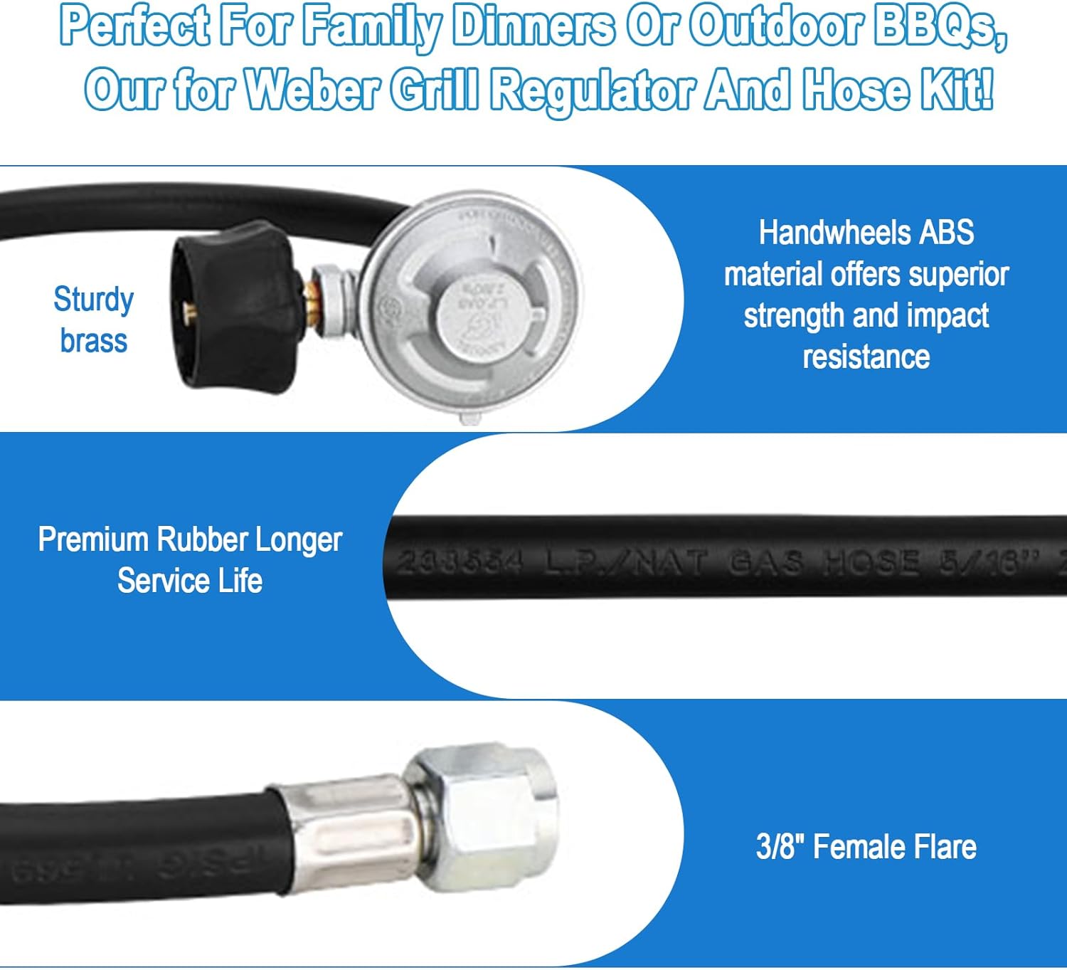 - For Weber Gas Grill Regulator and Hose Replacement Specific Stability: Elevate your grilling game with us gas grill regulator and hose, for weber conversion kit ensures flame stability. Achieving the perfect conversion from natural gas to propane is crucial, and the right grill regulator and hose is the key. Whether you're grilling steak, veggies, or bread, or other delicious cooking you'll get the optimal results.