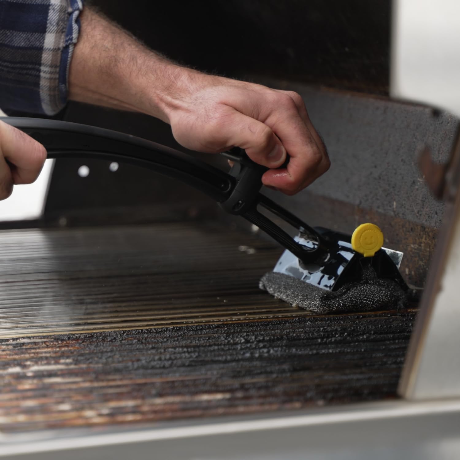 - Ergonomic and Functional - Not only is this grill brush bristle free, it's also built with your comfort in mind. On each of these grill brushes you'll find a helpful knob that provides plenty of leverage and an angled squeeze trigger that allows you to easily rotate the device when it's time to lean in and start scraping.